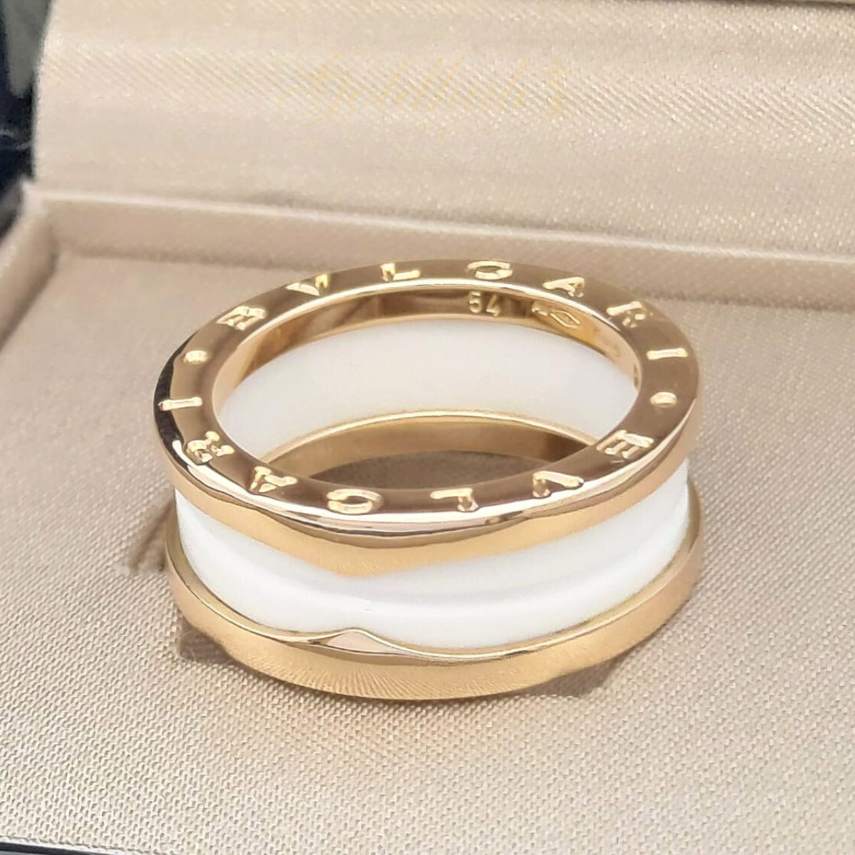 Bvlgari B.zero1 White Ceramic 2 Band Ring in Rose Gold, Size 54