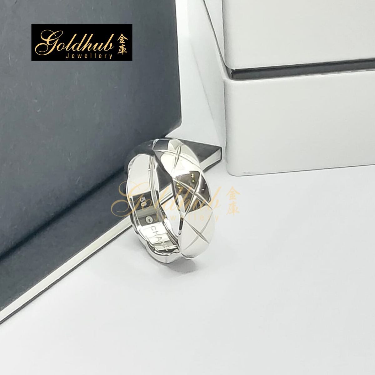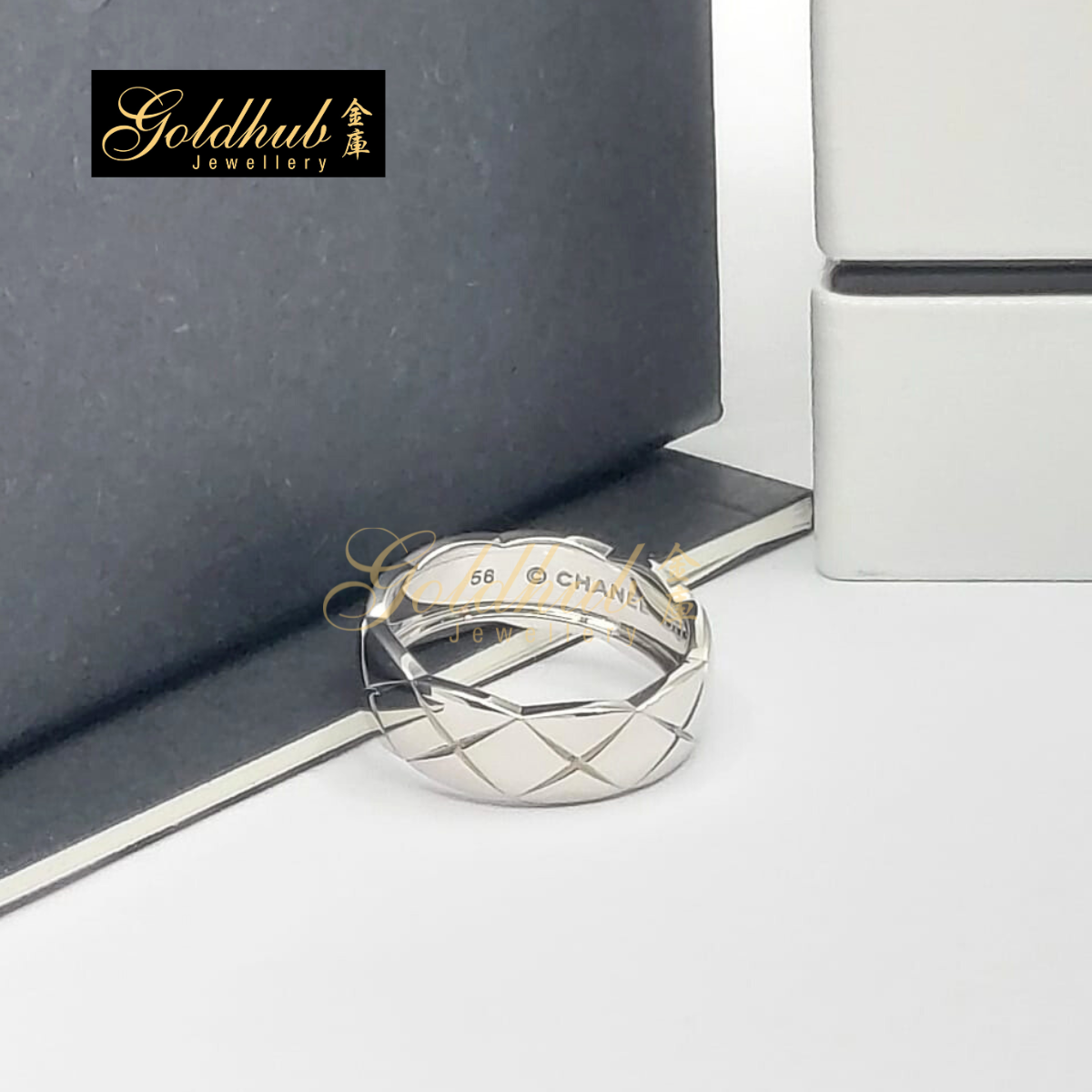 Chanel Coco Crush Quilted motif, Small Version in White Gold, Size 56