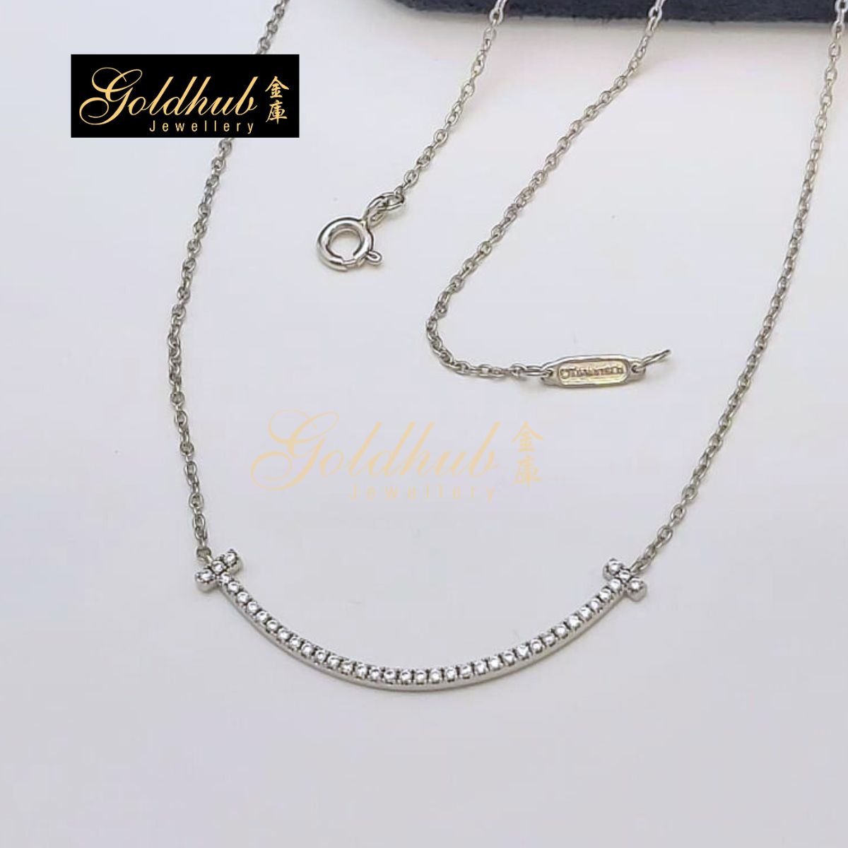 Tiffany T Smile Pendant, Small with Diamonds in White Gold